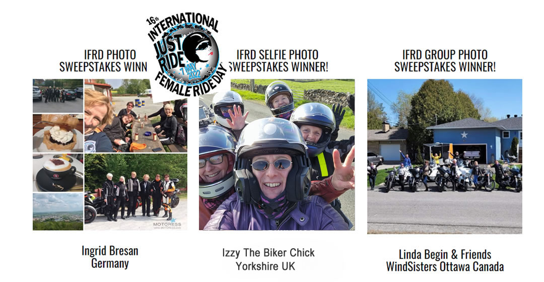 Announcing the International Female Ride Day® 2022 Photo Sweepstake’s photo sweepstakes prize draw winners! One name per photo category: IFRD Photo, IFRD Selfie, and IFRD Group was drawn from the total names submitted – per category.